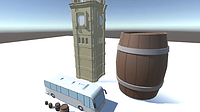 Objects imported into Unity Working out how to import objects into Unity. Just three models used: Barrel from Self Study 1, copied multiple times from a prefab General Post Office model from Self Stud...